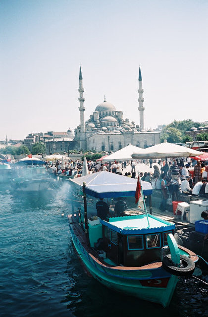 Boats on the Golden Horn, the Yeni Camii in the distance, İstanbul.