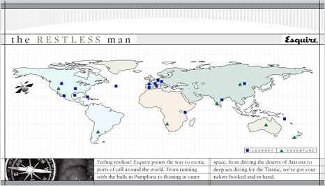 A flash-based companion piece to an Esquire article about a man who circumnavigates the globe.